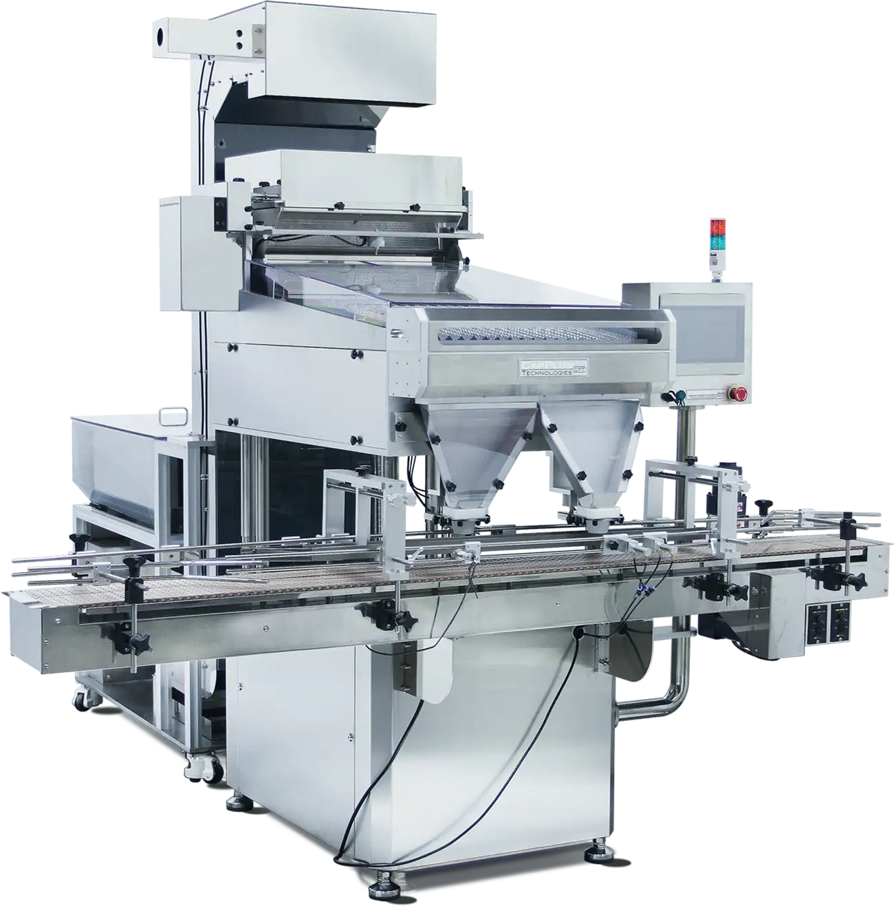 The reason gummies have not been counted is because, due to their sticky nature, they do not feed well through standard counting equipment. That is, until now. Our new RC90.18.2G Gummy Counter with its Floor Level Bulk Feed Hopper and Cleated Elevator have been designed to keep your line running smoothly by untangling the gummies before they get to the counting head.